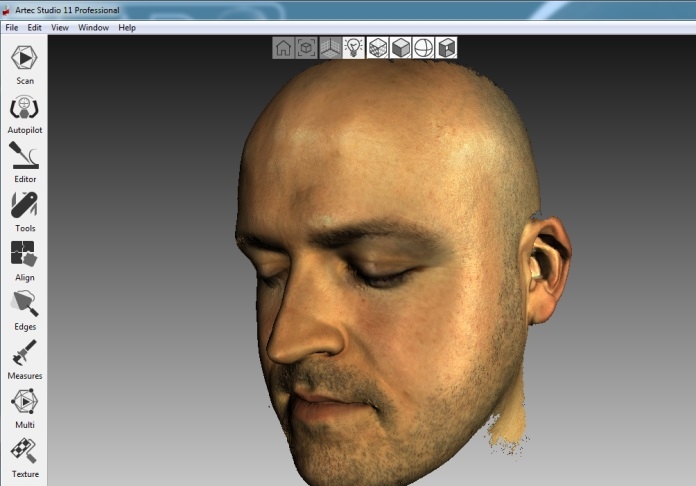 Una scansione 3D di un volto con texture fotografiche catturate utilizzando l'Artec Spider