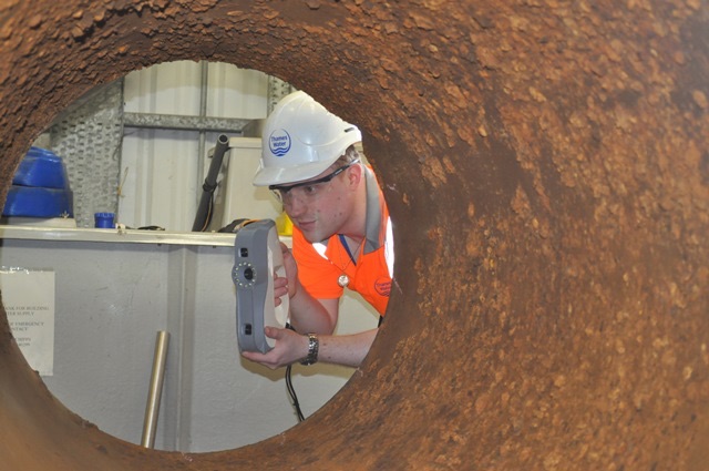 Сканирование, производимое на поверхности, позволяет понять возможности методов неразрушающего тестирования. Также они используют систему Konica-Minolta Vivid для определения коррозии на трубах малого диаметра (4-8"). Тем не менее, такая система не подходит для труб диаметром более 18". Для больших труб нужен портативный сканер, и Thames Water, оценив имеющиеся на рынке предложения, пригласили различных поставщиков, чтобы те продемонстрировали своё оборудование. Одним из них был британский партнёр Artec ПатрикТорн, который вместе со специалистом Thames Water отсканировал большой участок трубы с помощью сканера Eva, чтобы показать: Eva соответствует требованиям, предъявляемым Thames Water. В компании решили, что Eva – наиболее экономически эффективный вариант. После продажи сканера Патрик Торн провёл консультацию для сотрудников, работающих со сканером, а также помог с выбором ПО, необходимого для проведения детального анализа данных, получаемых сканером Eva.
